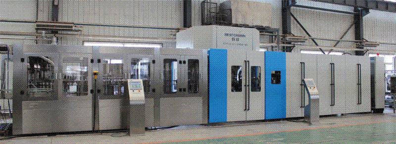 日前,湛江市椰湛饮料有限公司订购的吹瓶/冲瓶/灌装/旋盖四合一体式机组,在廊坊百冠总装车间顺利完成了出厂测试,将于近日发货客户现场。该设备生产速度为20000瓶/小时,将用以灌装“椰树牌”天然泉水。