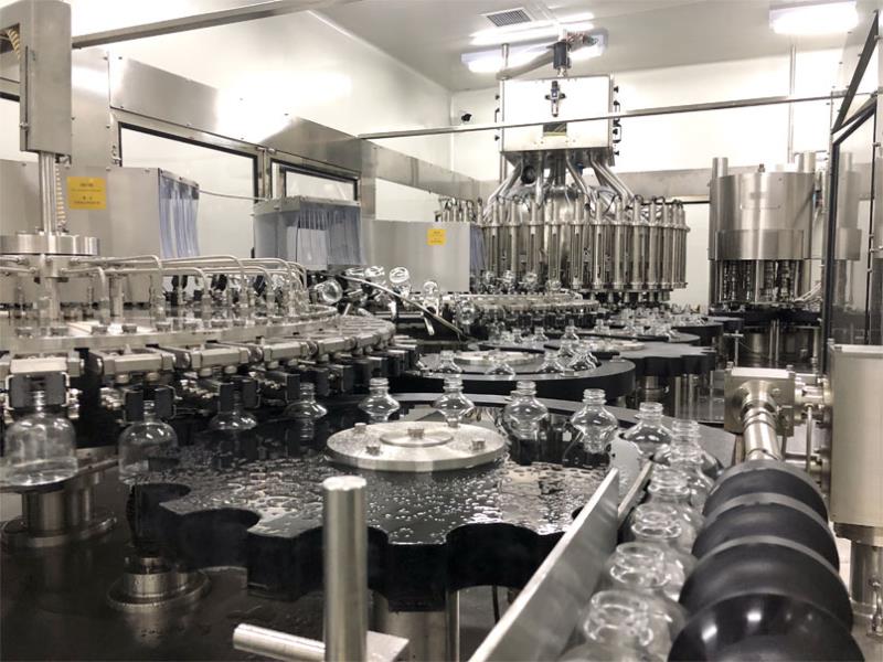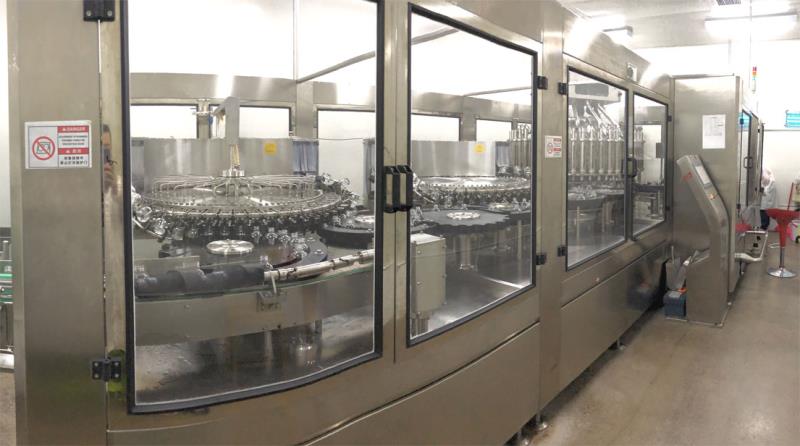 2017年,由廊坊百冠量身定制的20000B/H(330ml)玻璃瓶灌装生产线落户凉露酒业,开启了玻璃瓶酒类灌装的新篇章。其中白酒定量灌装一体机为四合一机型,具备冲瓶、沥干、灌装、封口功能,为百冠公司高端产品之一。